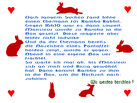 Ich Monsieur Goodies Hasen-Goodies Na ja derzeit gibt es noch nicht viel an Goodies. Darum fällt diese Seite auch etwas mager aus. E-Card: Extraausgaben zur Hochzeit: 1. Ausgabe: 2. Ausgabe: Das war es nun der Goodies. Später eventuell mehr.